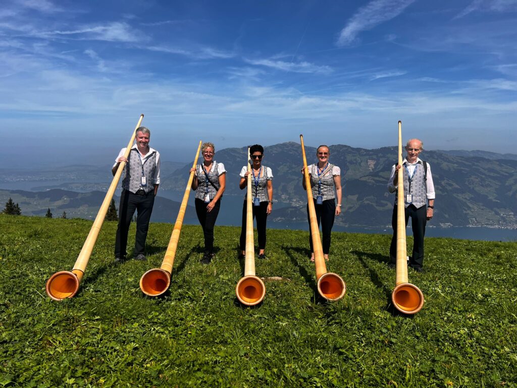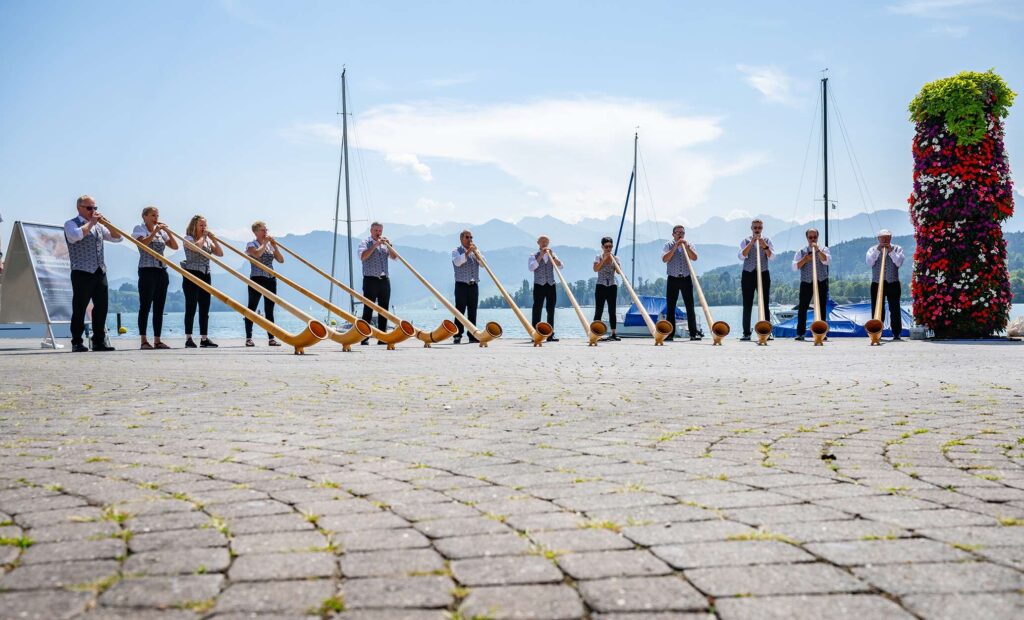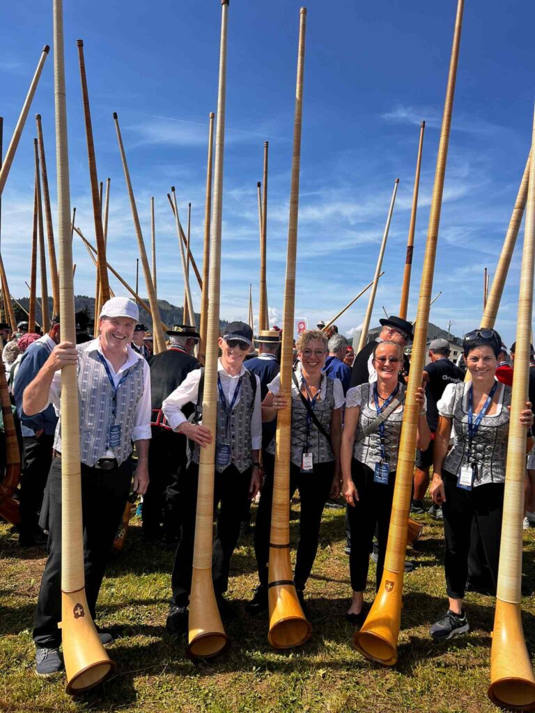Die Alphorngruppe hat seit 2022 an verschiedenen Veranstaltungen aufgespielt.
